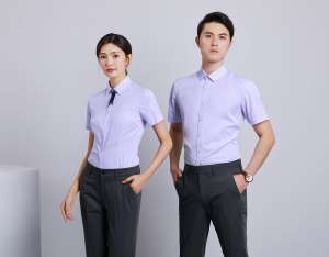 襯衫定制 時尚襯衫男女士夏季 淺藍色短袖襯衫